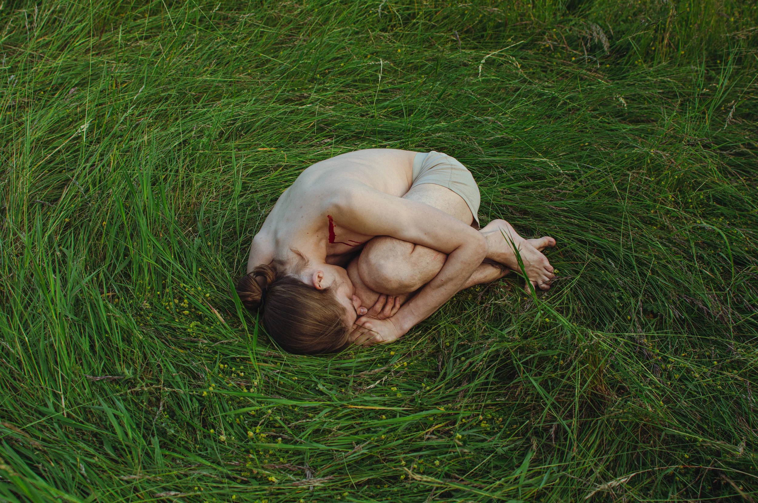 The section presented here shows the protagonist listening to a video meditation. As she falls asleep she experiences the imagery described by the coach: she is flying, observing her body lying on the bed, transformed into a thick layer of asphalt. Beneath it, soil emerges, followed by grass breaking through the surface, cracking the asphalt and turning into a beautiful field of flowers. Then she can return to her body as a strong white light, ready to wake up after her spiritual rebirth.